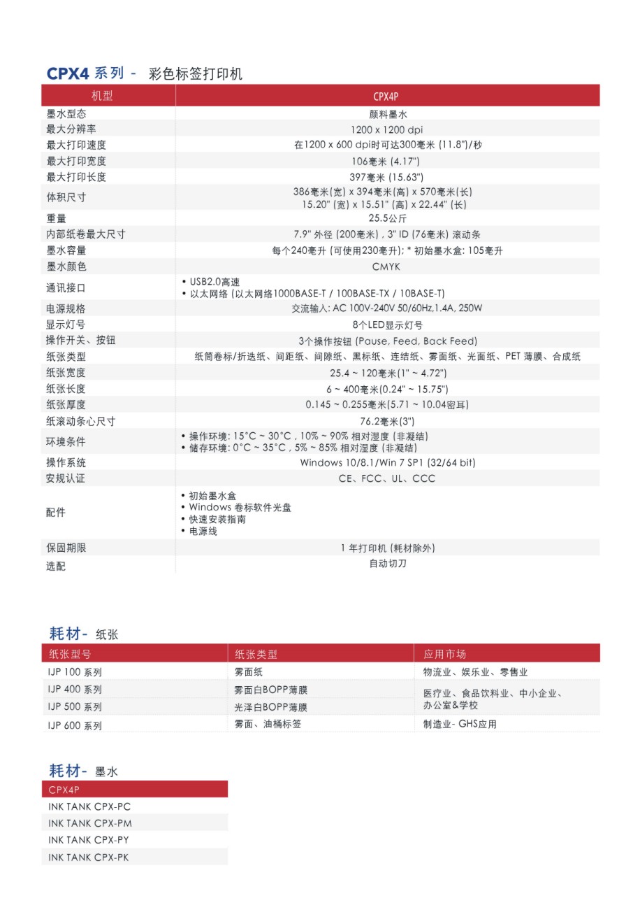 ?打印速度最快可達(dá)每秒11.8 ips ?最高分辨率1200 x 1200 dpi ?可調(diào)整紙張寬度1 英寸到4.72 英寸之間 ?TSC顏色管理工具可 精確比對(duì)顏色?一年保固 ?支持多種紙張類型 ?高速和高效能的USB和以太網(wǎng)絡(luò)接口 ?高容量墨盒